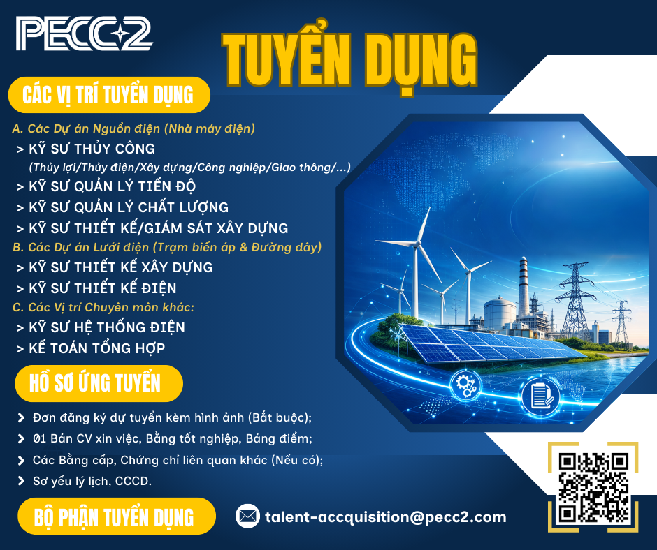 Giai đoạn 2026-2030 mở ra một giai đoạn phát triển mới của Công ty Cổ phần Tư vấn Xây dựng Điện 2, với định hướng đẩy mạnh triển khai các dự án Nguồn và Lưới điện quy mô lớn trong nước và quốc tế. PECC2 tìm kiếm những nhân sự bản lĩnh chuyên môn, tư duy đổi mới và khát vọng bứt phá để đồng hành kiến tạo hạ tầng năng lượng bền vững cho tương lai.