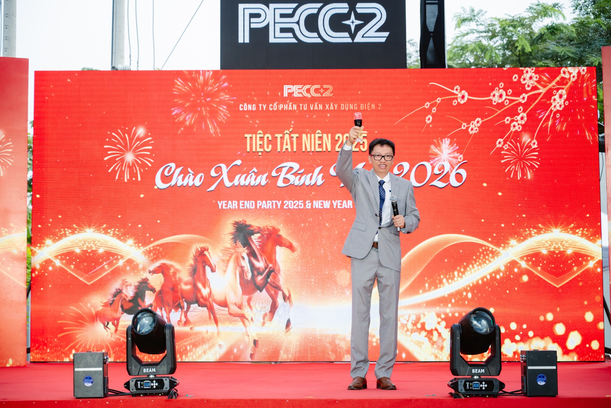 Ông Nguyễn Chơn Hùng nâng ly khai tiệc tại Tiệc liên hoan Tất niên - Year-End Party 2025 của PECC2.