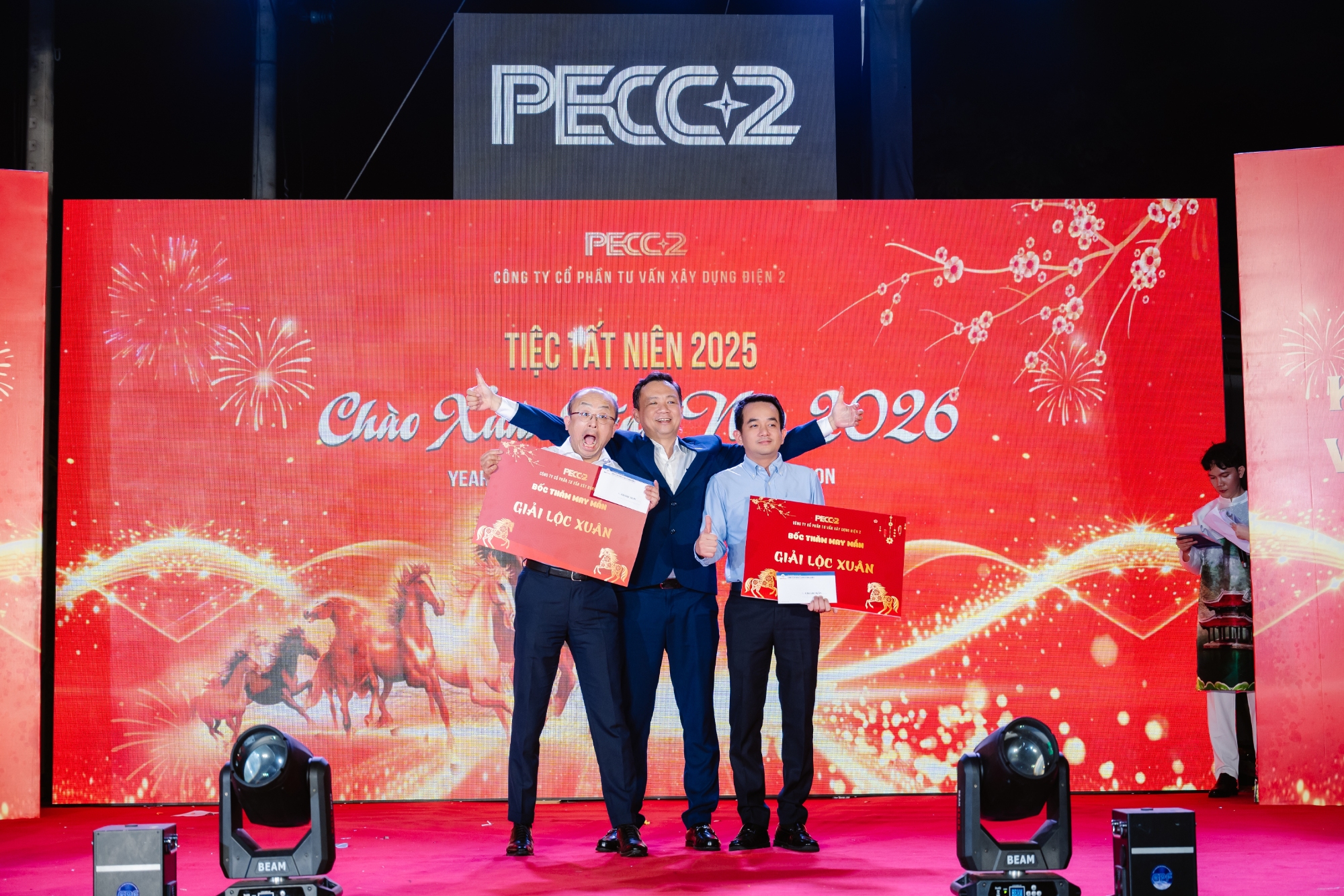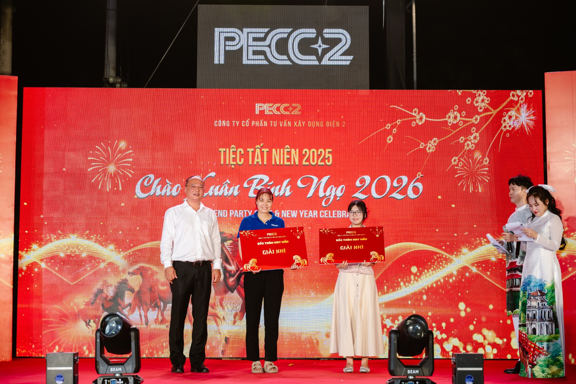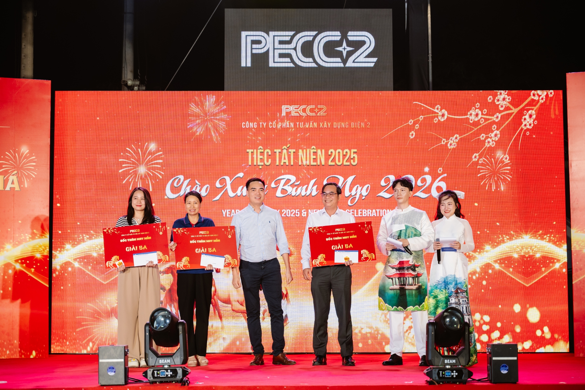 Xen kẽ các phần thi là những chương trình bốc thăm may mắn, góp phần tăng thêm sự hào hứng, tạo những khoảnh khắc bất ngờ, vui tươi và lan tỏa niềm vui đến đông đảo người tham dự. Sự tương tác tích cực giữa người lao động các đơn vị đã làm nên một đêm tiệc gắn kết, đúng với tinh thần văn hóa doanh nghiệp mà PECC2 luôn hướng tới.