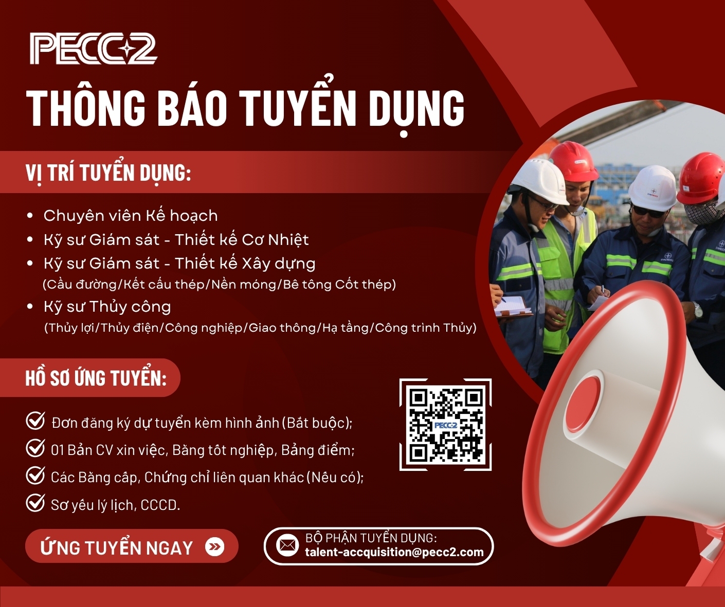 Gia nhập PECC2 - Bạn không chỉ có một công việc mà còn có một hành trình để khẳng định bản thân, nơi mỗi đóng góp đều mang ý nghĩa cho Cộng đồng và Ngành năng lượng Việt Nam.